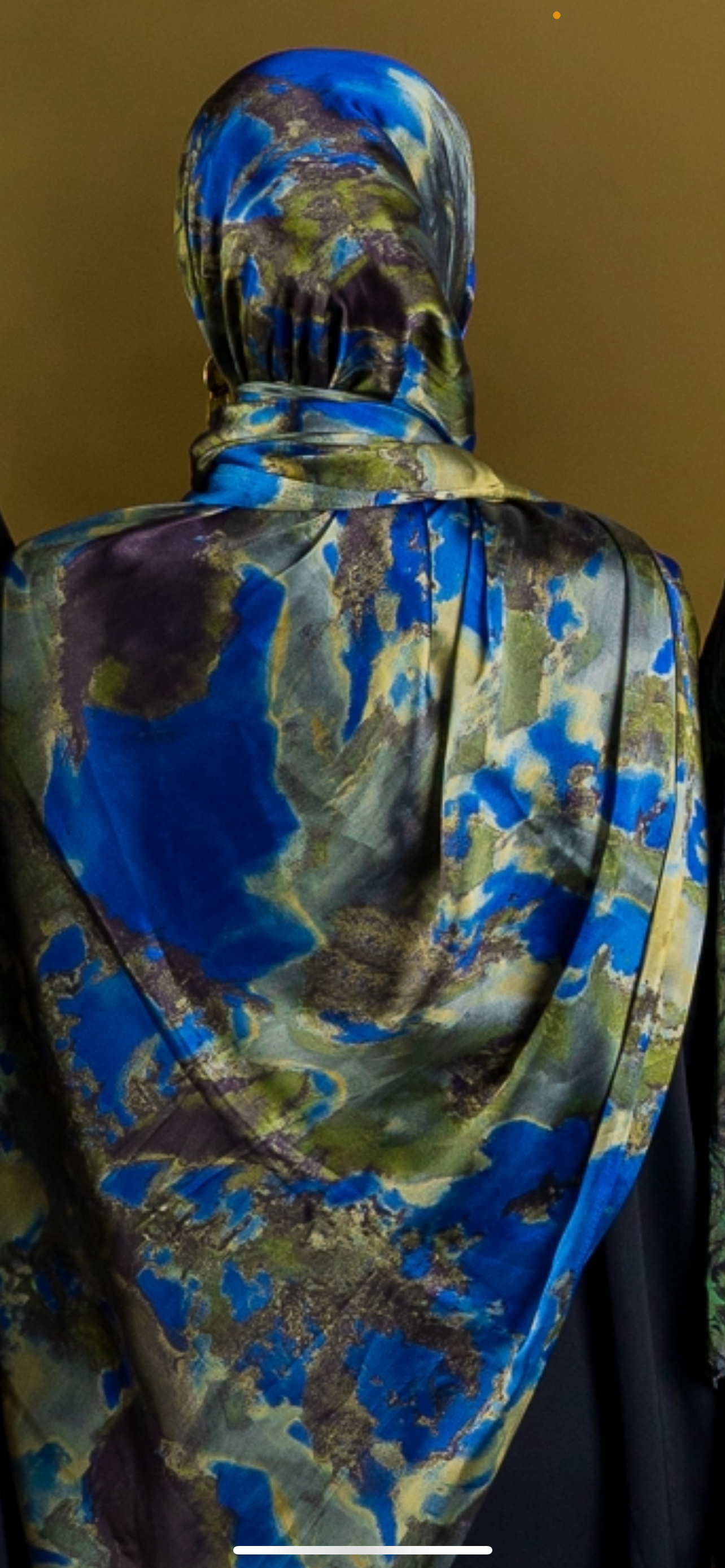 A graceful blend of earth and elegance. Printed on soft chiffon with abstract and floral patterns. Designed in a large size for full coverage and effortless draping, it's perfect for bold, nature-inspired modest fashion