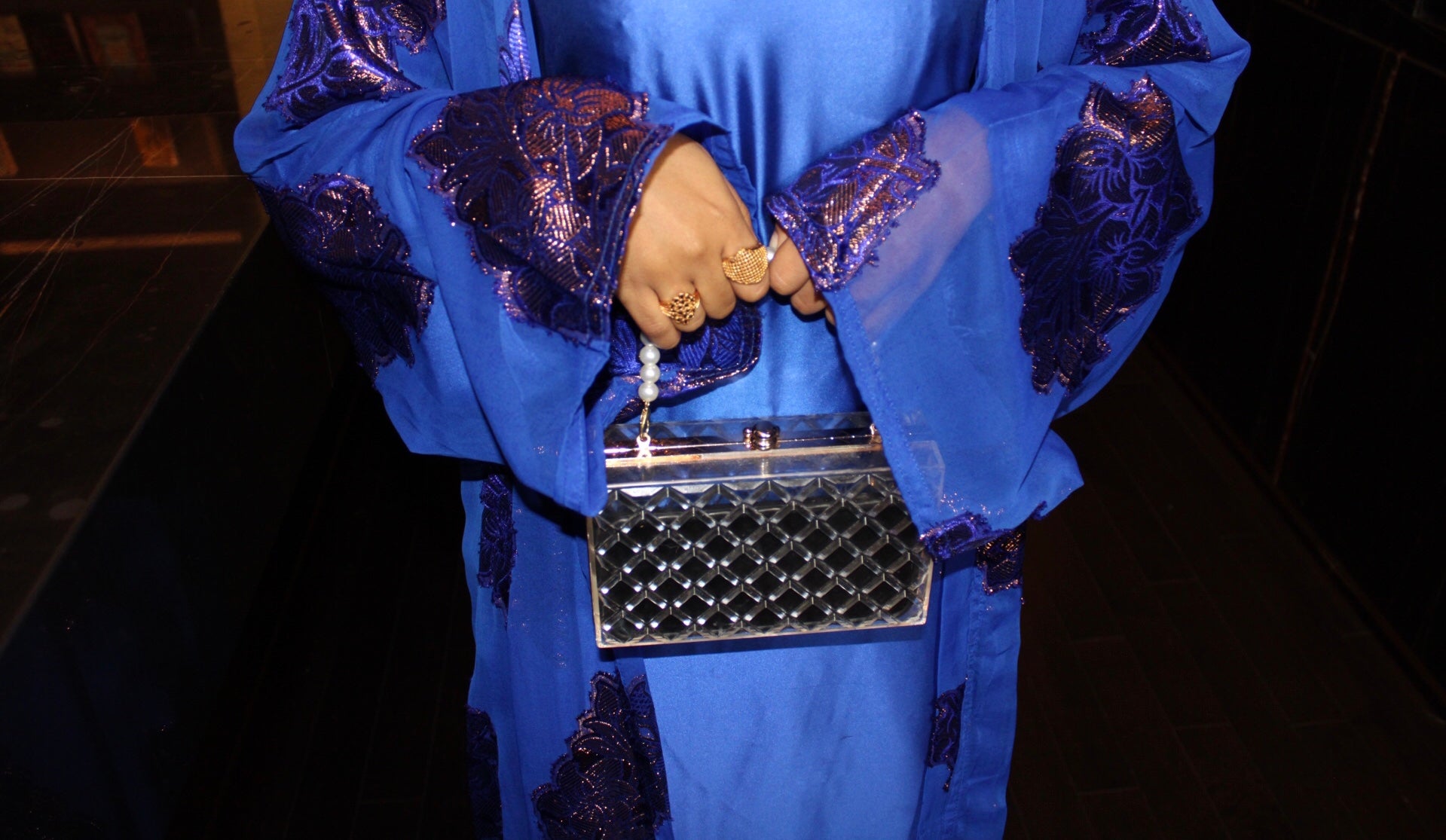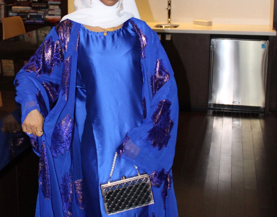 Immerse yourself in the allure of our radiant blue Abaya, meticulously designed to exude grace and charm !!!