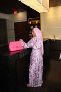 Elevate your modest wear with our exquisite Barbie princess Pink Abaya ensemble, meticulously crafted to blend cultural elegance with contemporary style. Inspired by rich cultural roots, this stunning Abaya set is a testament to timeless sophistication.