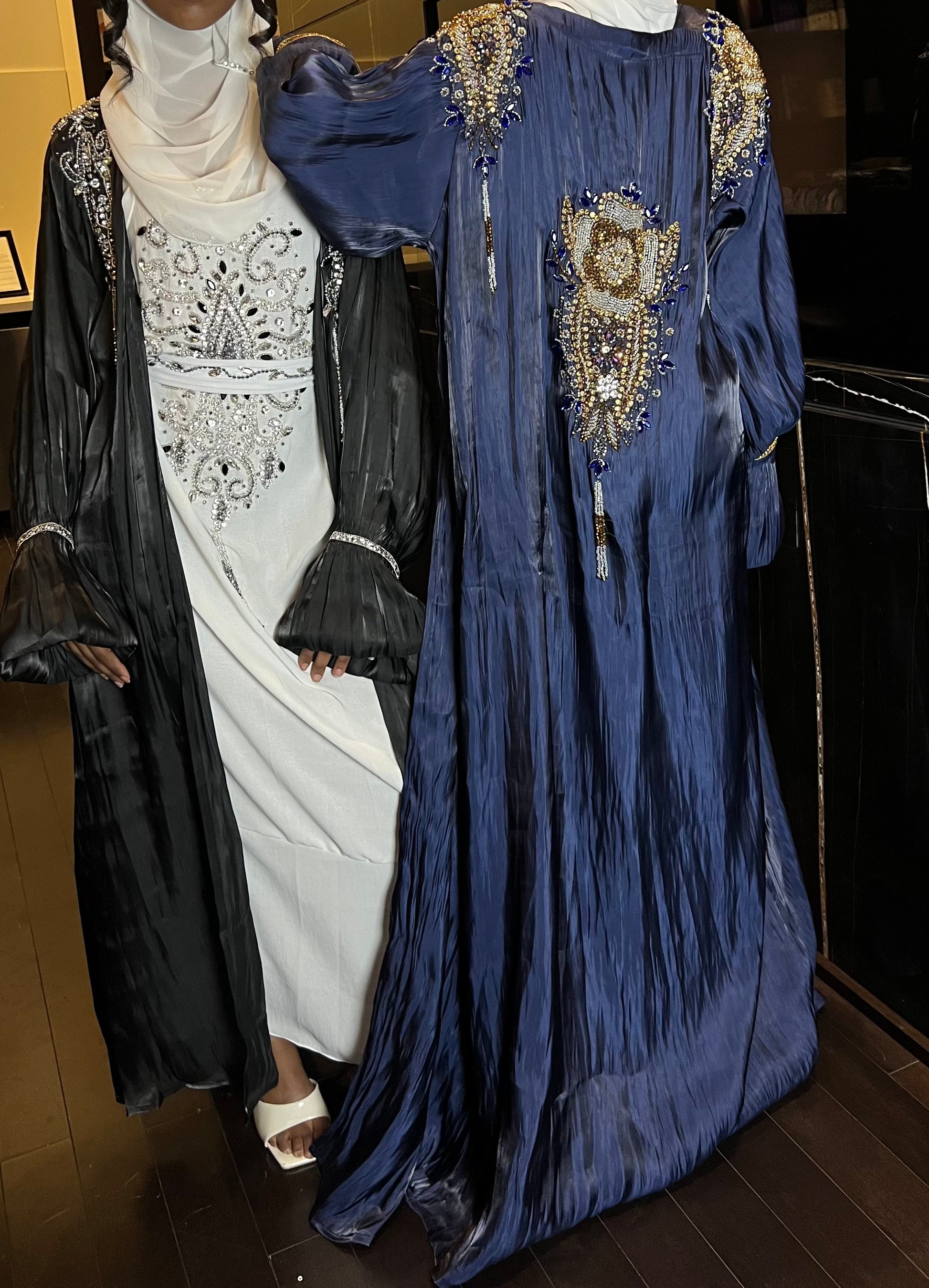 Our 2023 ballon hand inspired abaya is everything. From the gold detailing around the hands to the detailed hand sewed beaded colours on the shoulders and the back.This abaya gave ballon hand abaya a whole new meaning. The Kalila abaya is defiantly a show stopper and demands the room. With lights reflecting off of it, it will allow you to feel like the quruxley (beautiful) princess that you are !!!