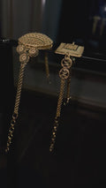 The design features sculpted filigree domes, cascading chains, and sunburst accents that glimmer with every movement- perfect for weddings, special occasions, or to add a regal touch to any outfit.