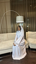 Our white hand sewed detailed black beaded abaya is a mixture of simple and show stopper !!!