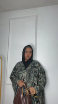 Luxury open front kimono adorned with bold metallic geometric patterns and wide statement sleeves. Designed for an elegant, regal look