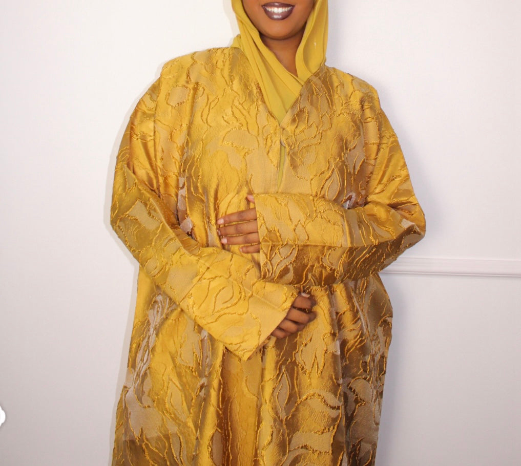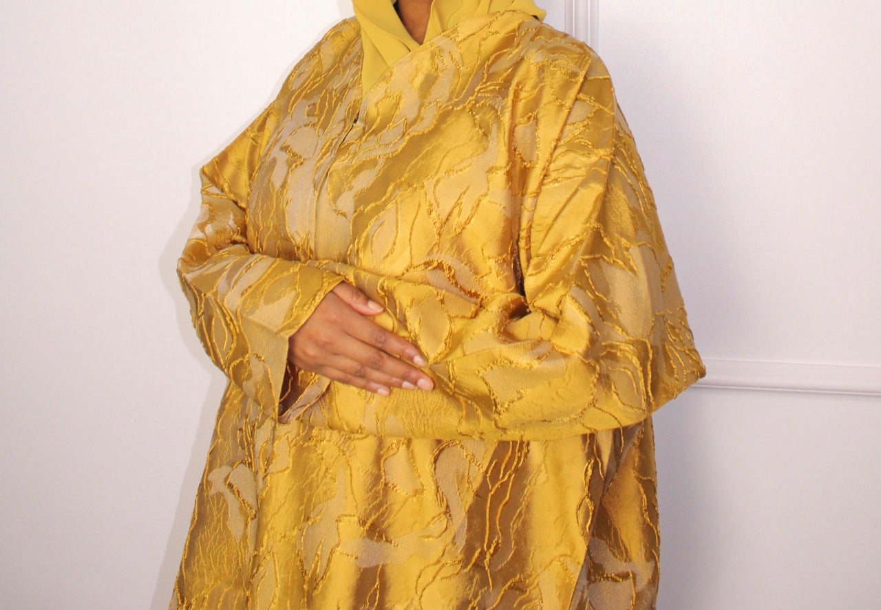 A radian Gold ensemble crafter with rich textured patterns that shimmer beautifully. Designed for statement elegance and timeless sophisticaton.